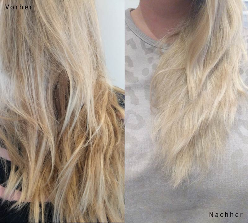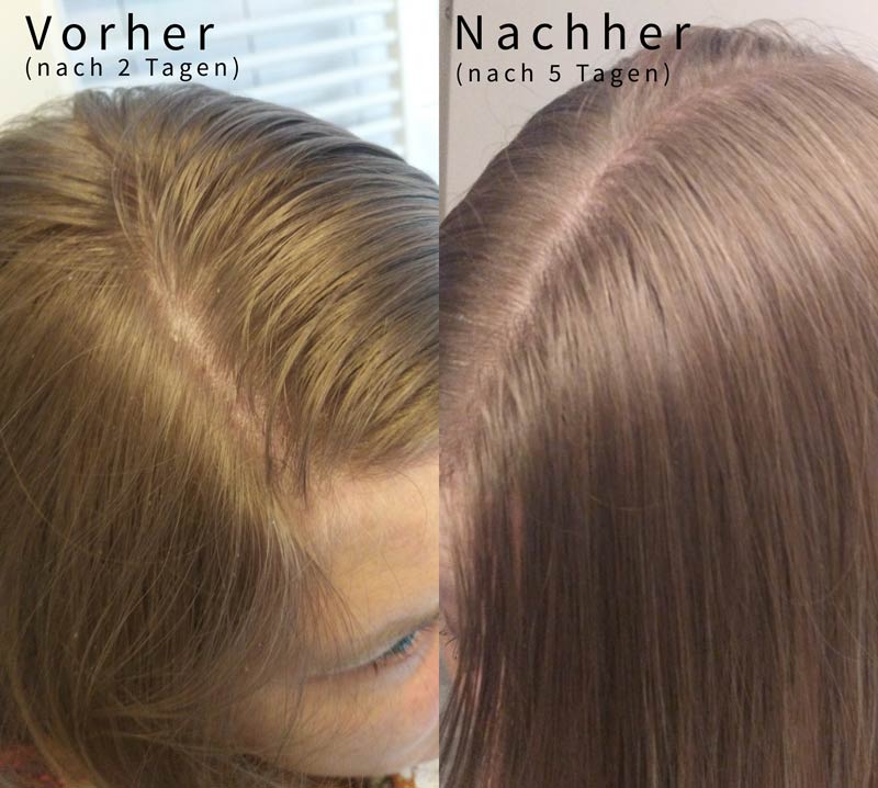 Waschzyklus von 2 auf 3 (manchmal sogar 4) Tage verschoben – ich bilde mir auch ein, es werden wieder mehr Haare – auf alle Fälle fühlen sie sich super gut an und die Kopfhaut juckt nicht mehr wie früher mit Shampoo ….