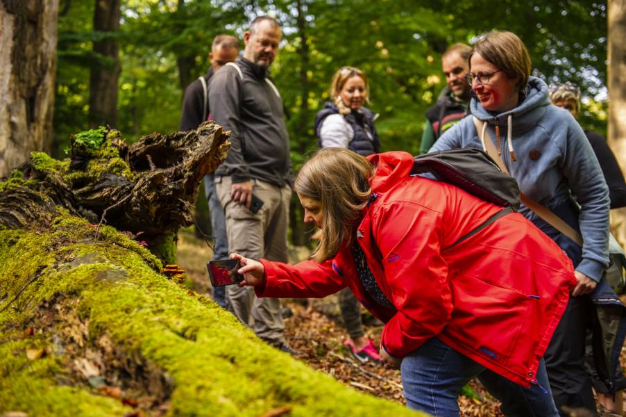 Begleitet wurden wir auf unserem Weg von Jan Preller, Förster Landesbetrieb Wald und Holz NRW und Leiter des Waldinformationszentrums Hammerhof*, sowie der Pilzexpertin* Nennette Sicke-Hemkes, die beide gleichermaßen Interessantes über die Natur zu berichten hatten.