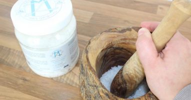 Für das Limetten-Badesalz mit Magnesiumöl habe ich die Magnoleum Flakes* im Mörser zerkleinert, ungefähr die gleiche Menge Totes Meer Salz* hinzugegeben und die Schale einer frischen Limette drüber gerieben. Abgerundet werden kann das Ganze, für einen besonders angenehmen Duft, mit einem ätherischen Öl eurer Wahl. Wasser einlassen, selbstgemachtes Badesalz rein und genießen! Einen Teil des Badesalzes könnt Ihr übrigens zusätzlich als Peeling nutzen :-)