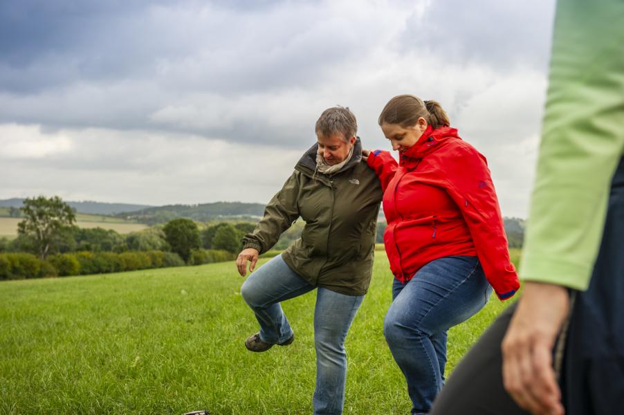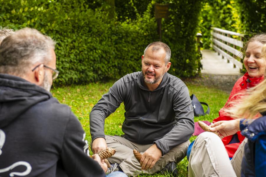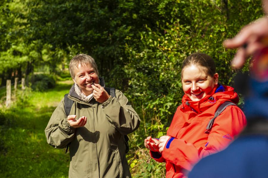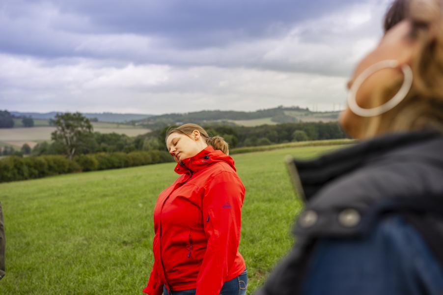 Am nächsten Tag wartete Anke Holz* im Wald auf uns, um gemeinsam einen Teil des Niesetalweges in Achtsamkeit zu gehen. Ich liebe es, diese Form der Achtsamkeit in der Natur zu leben und fand es außerdem wirklich spannend, meine BegleiterInnen dabei zu beobachten, wie sie ihre ersten Erfahrungen mit diesem Thema machten. Rückwärtslaufen, Beerenmeditation (statt Schokoladenmeditation), achtsames Gehen und eine Atem-Meditation haben uns dabei geholfen, im JETZT anzukommen und uns zu erden. Anke Holz habe ich als Achtsamkeitstrainerin sehr gemocht. Nicht zuletzt, da sie sehr bodenständig und ohne „Esoterik-Touch“ arbeitet – das gefällt mir persönlich gut!