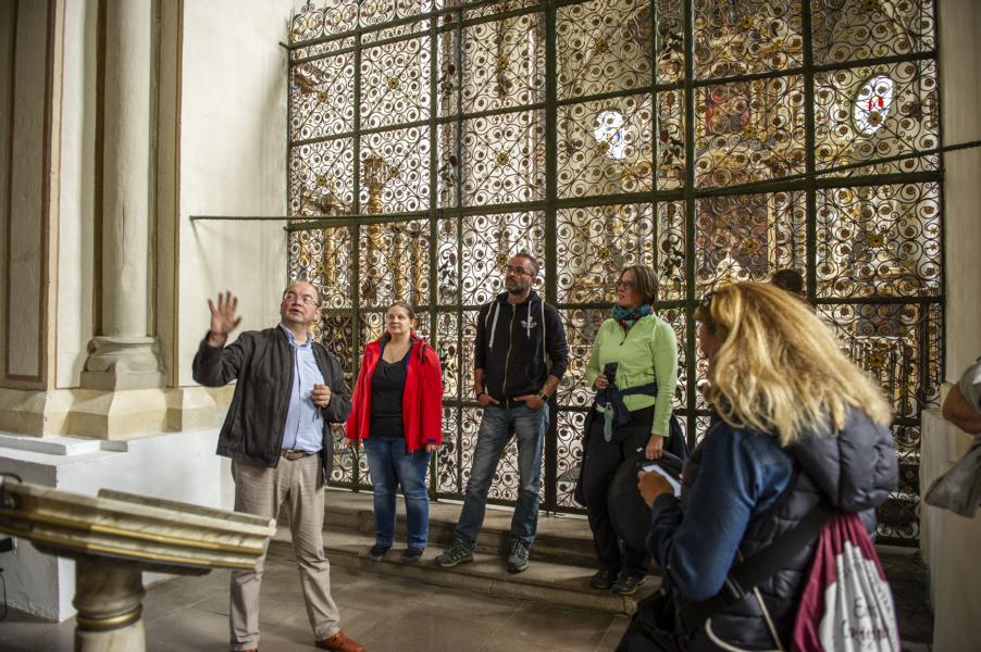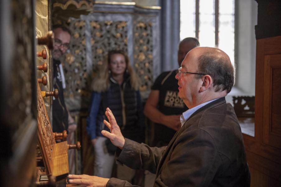 Nach der Wanderung ging es in die Abtei Marienmünster*. Ein Programmpunkt, der mich zu Beginn gar nicht sonderlich ansprach, am Ende aber, dank Hans Hermann Jansen*, zu meinem persönlichen Highlight gehörte. Seine Liebe zu Marienmünster und zur Musik ist mit jedem gespielten Ton und jeder gesprochenen Silbe spürbar und hat mich zu Tränen gerührt. Ein absolut beeindruckender Mensch, dem ich den ganzen Tag hätte zuhören können, wie er „Die besondere Königin der Instrumente“ spielt, singt und über die Kirche und ihre Geschichte erzählt. Ein Ort, an den ich auf jeden Fall nochmal zurück kehren möchte. Am liebsten gemeinsam singend mit Hans Hermann :-)